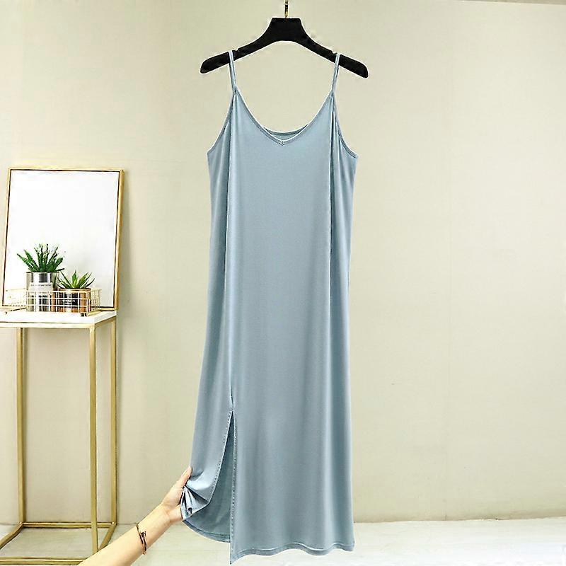 Sexy Lady Midi Slip Dress Nightdress Petticoat Spaghetti Strap Sleepwear Slit