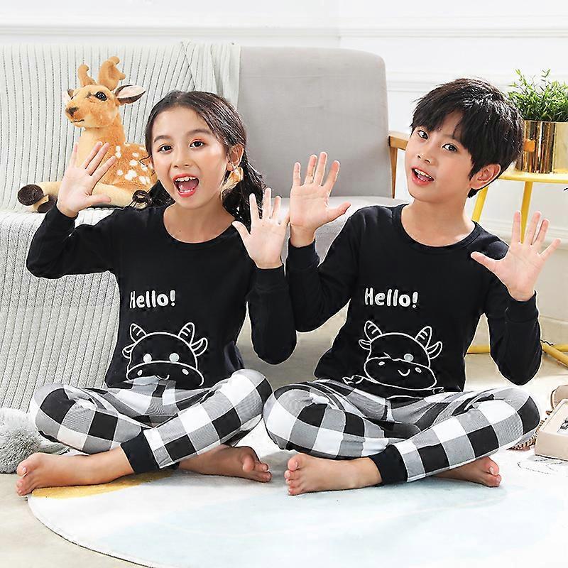 Black Cow Animal Pijamas 2pcs Long Sleeve Children's Loungewear Sets Teen Pajamas Suits Pyjama For Kids Pijamas Infantil Meninos