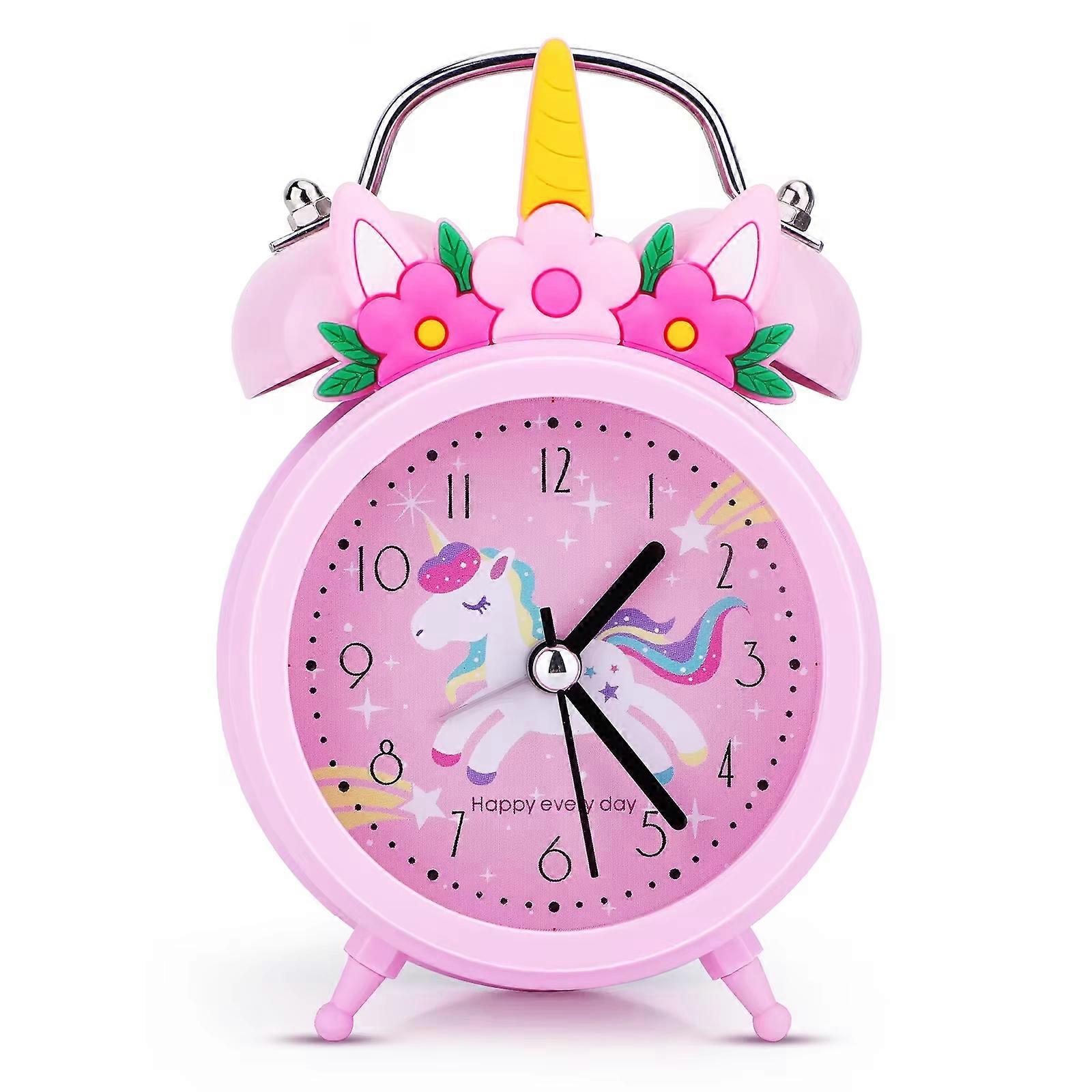 Pink Unicorn Kids Alarm Clock Double Bell Clock with Backlight Cute Desk Clock Children Wake Up Alarm Clock Home Decor Kid Gifts