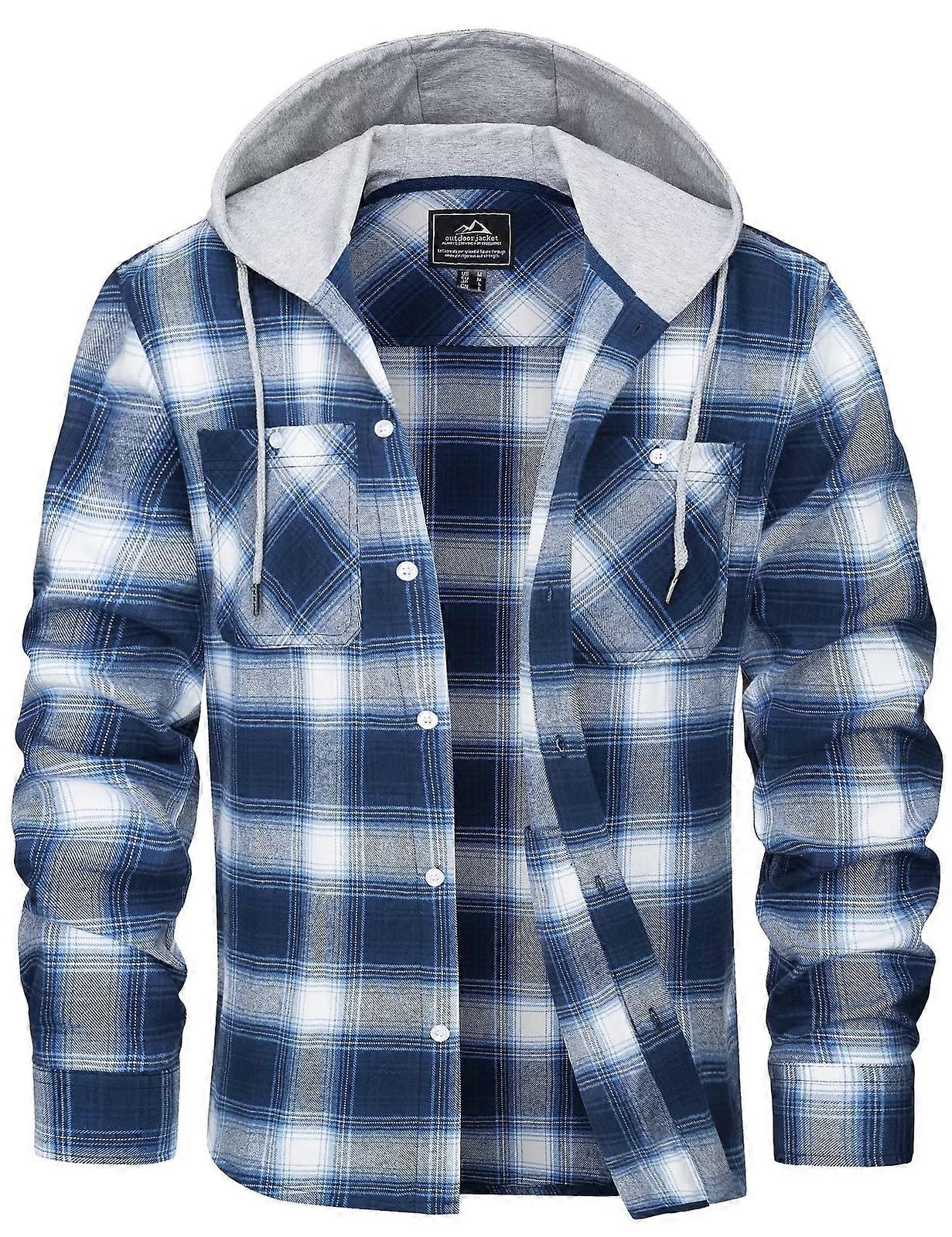 Men's Plaid Cotton Shirts 6 Pockets Long Sleeve Lightweight Flannel Hoodie Coats