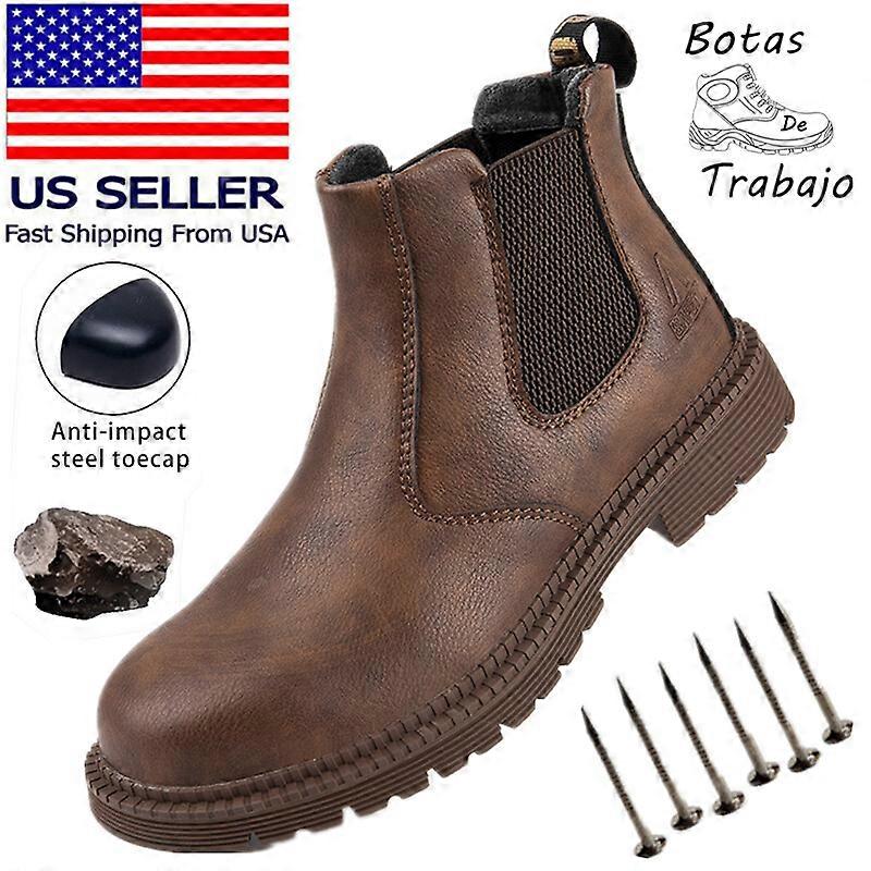 Mens Rubber Sole Work Boots Waterproof Steel Toe Slip Resistant Anti-Smash Shoes