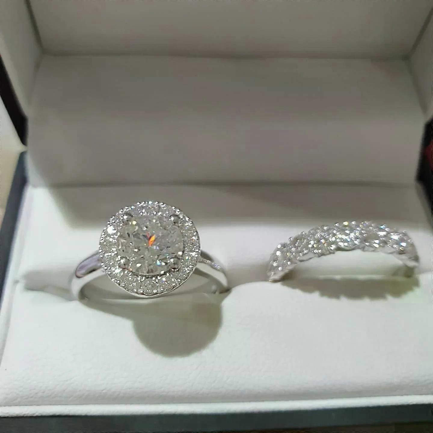 Elegant White Stone Zircon Luxury Engagement Silver Color Round Rings Set Party Anniversary Wedding Rings for Women