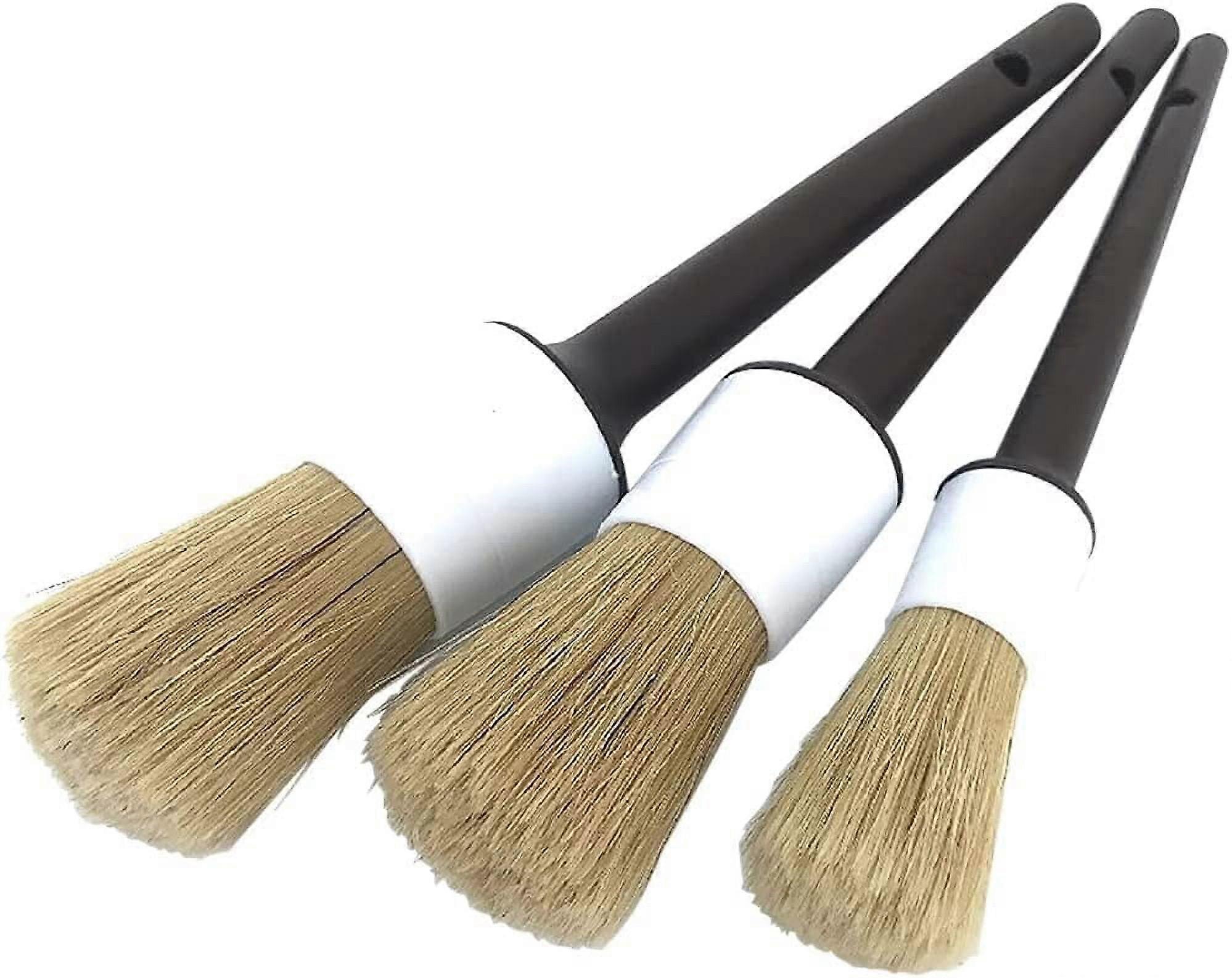 3pcs Boar Hair Brushes for Car Detailing, Compatible with Truck, Motorcycle, Bicycle, RV, Wheel, Grille, Bumper, Non-scratch Cleaning Kit