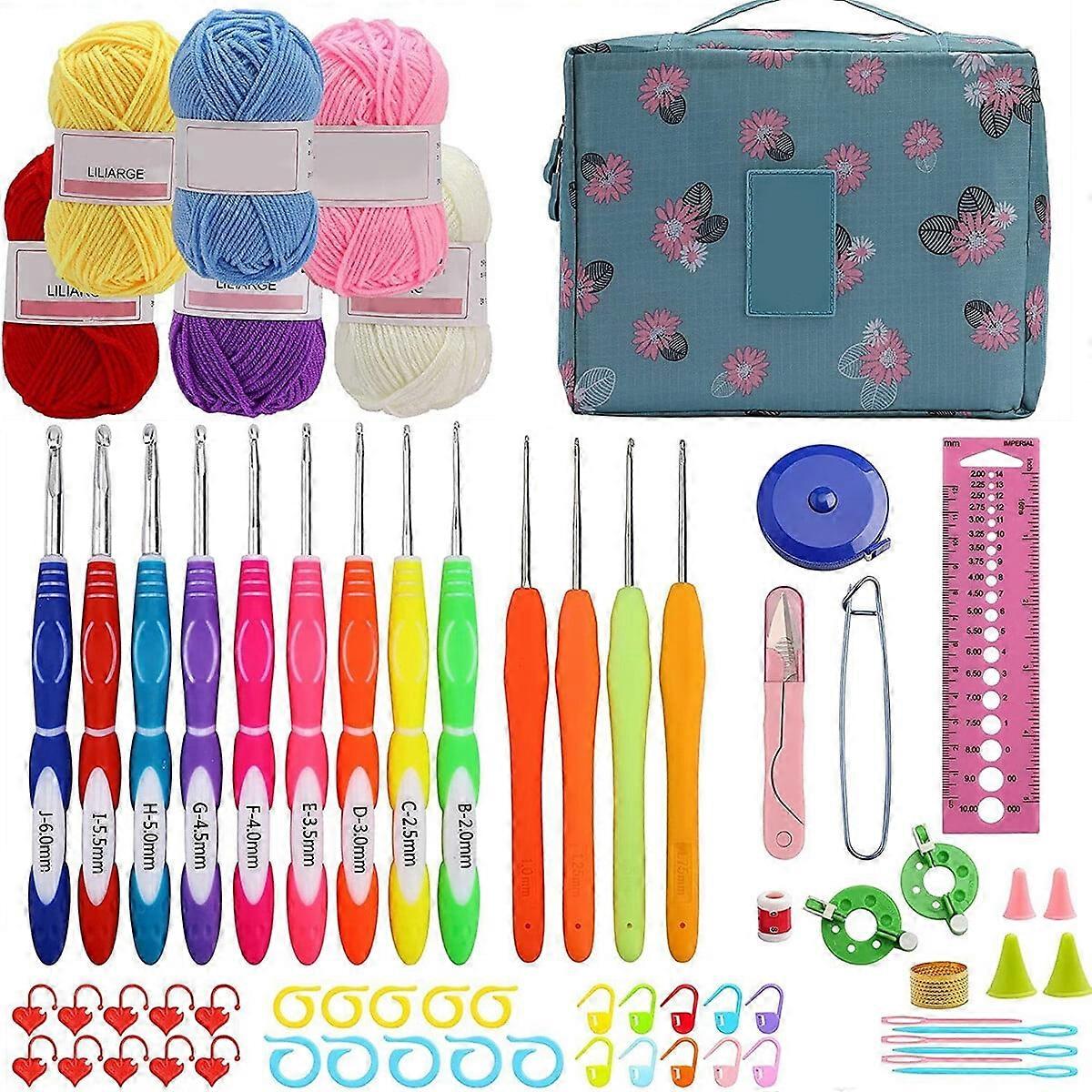 FUYGRCJ 68 PCS Crochet Hook Set with Case, Ergonomic Crochet Kits Include 5 Roll Yarn, Knitting Needles and Other Supplies