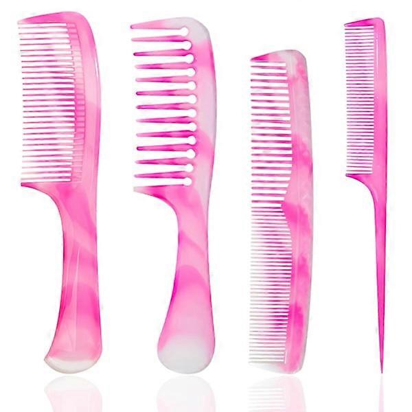 Pink Hair Comb Set of 4: Wide, Fine, Rat-Tail & Double-Sided Combs for Women, Small Size
