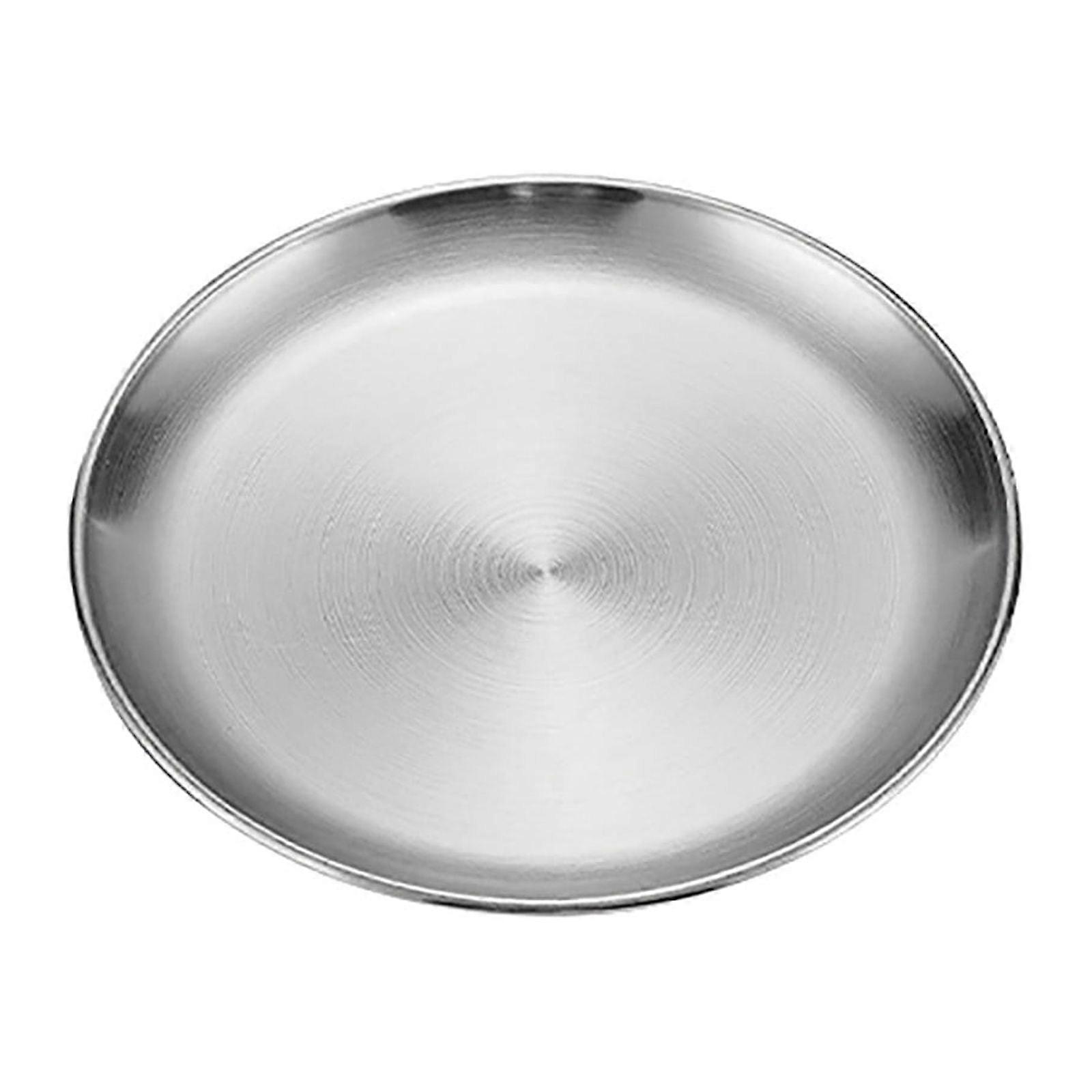 Moocorvic Round Dinner Plates, Stainless Steel Thickened Barbecue Plates, Shatterproof & Dishwasher Safe(Silvery)