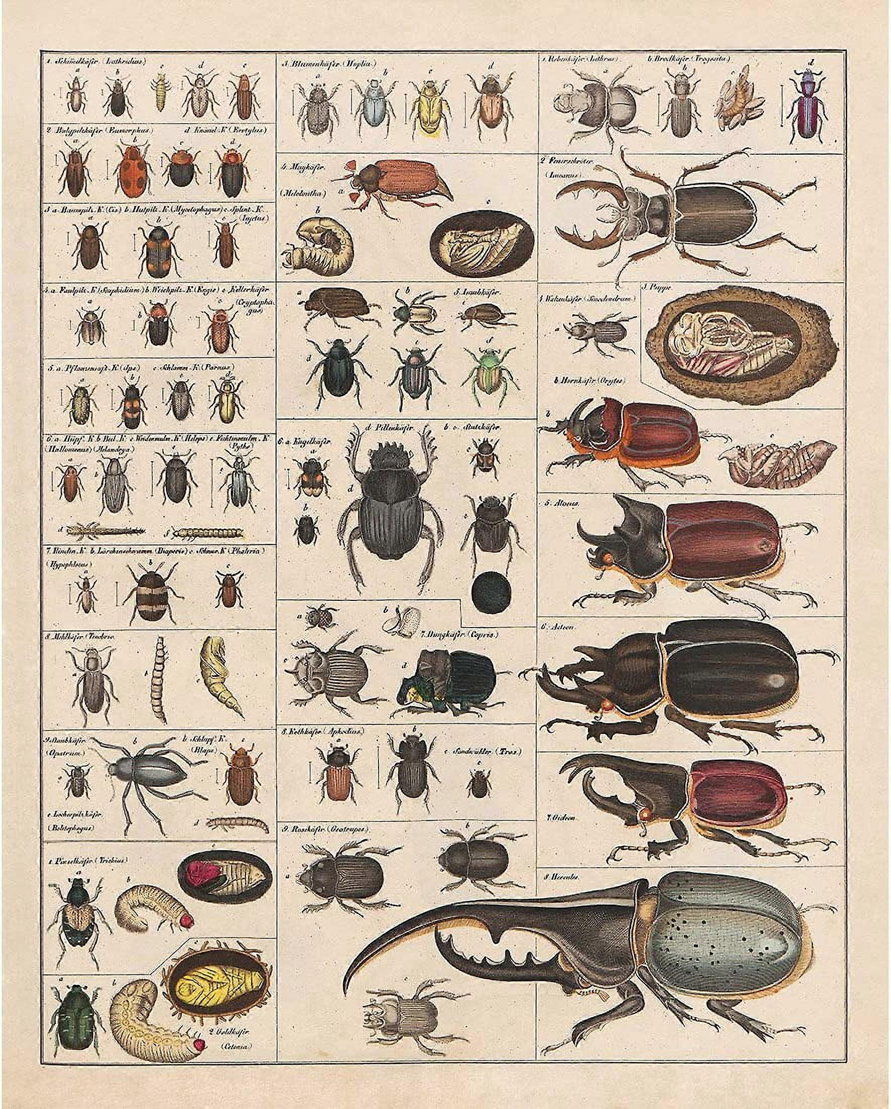 ASPORIC Vintage Insect Poster Print, Species ID Chart, Entomology Diagram for Classroom or Club Wall Decor, 12x16 Inch Unframed