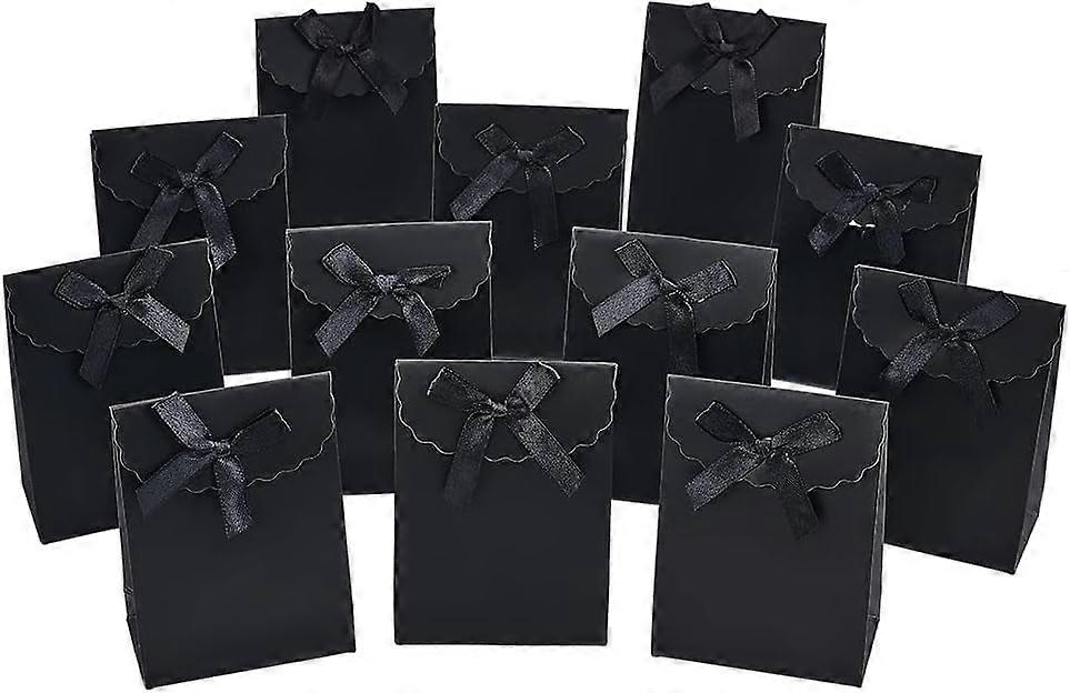 24 Pcs Kraft Paper Gift Bags 4.13x2.95x1.65 Inch with Ribbon Bowknot, Compatible with Candy, Cookies, Wedding, Christmas Party Packaging, Black