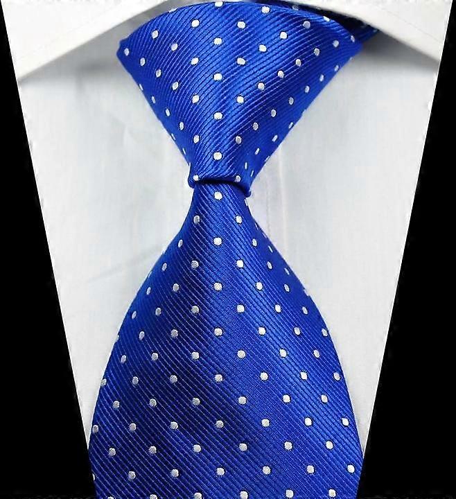 Hot Classic Pattern Dots Blue White JACQUARD WOVEN 100% Silk Men's Tie Necktie