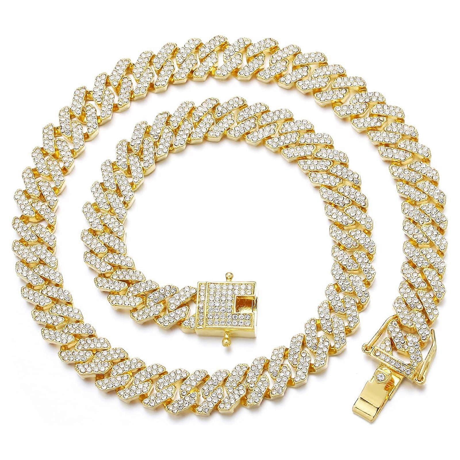 Cuban Link Chain for Mens, Iced Out Miami Cuban Necklace Bling Diamond Hip Hop Jewelry for Women,Gold, 18in