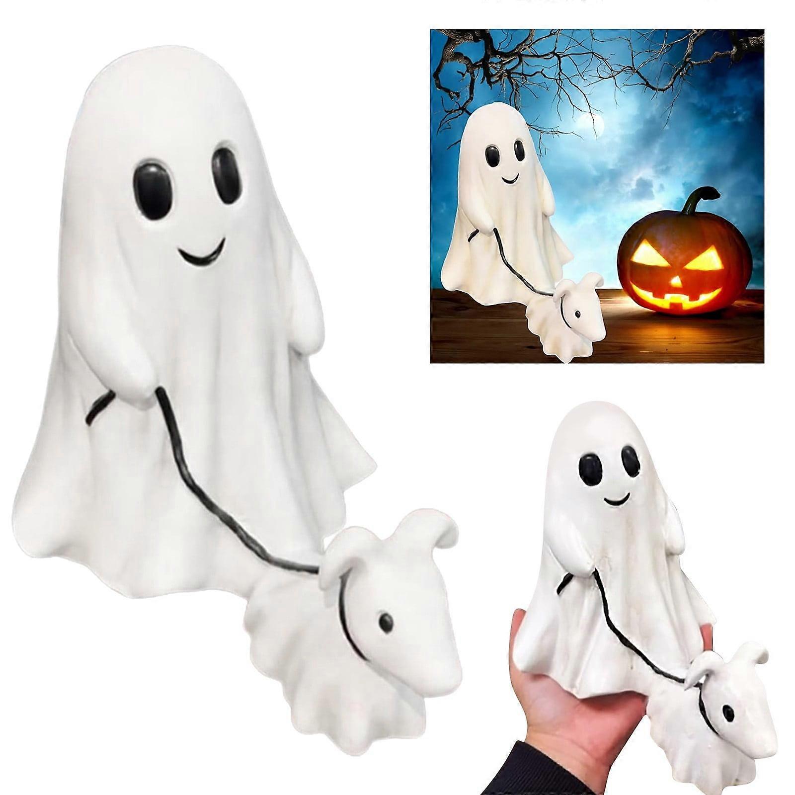 Ghost Walking Dog Statue, Spooky Halloween Figurine for Indoor Outdoor, Garden Statues Outside, Kids, Family, Friends (Small)