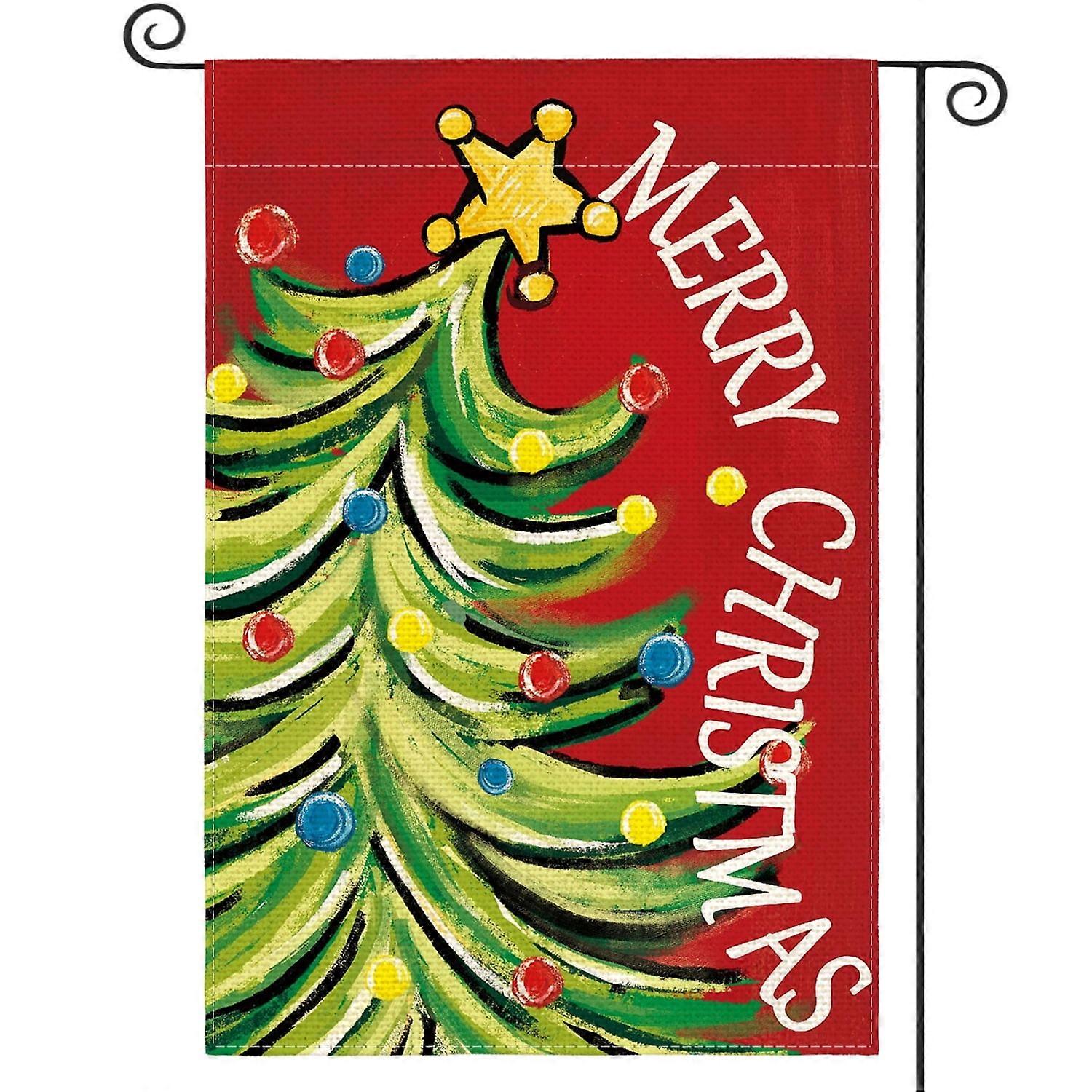 Sm:)e Merry Christmas Garden Flag 12x18 Inch Double Sided, Christmas Tree Xmas Winter Holiday Yard Outdoor Decorative Flag
