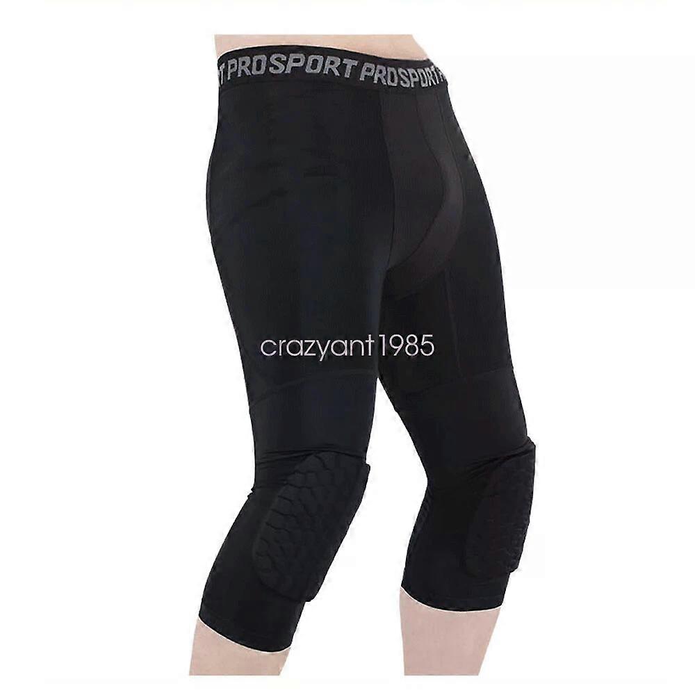 Sport Basketball Pants Knee Pads 3/4 Capri Compression Tight Legging Youth Adult