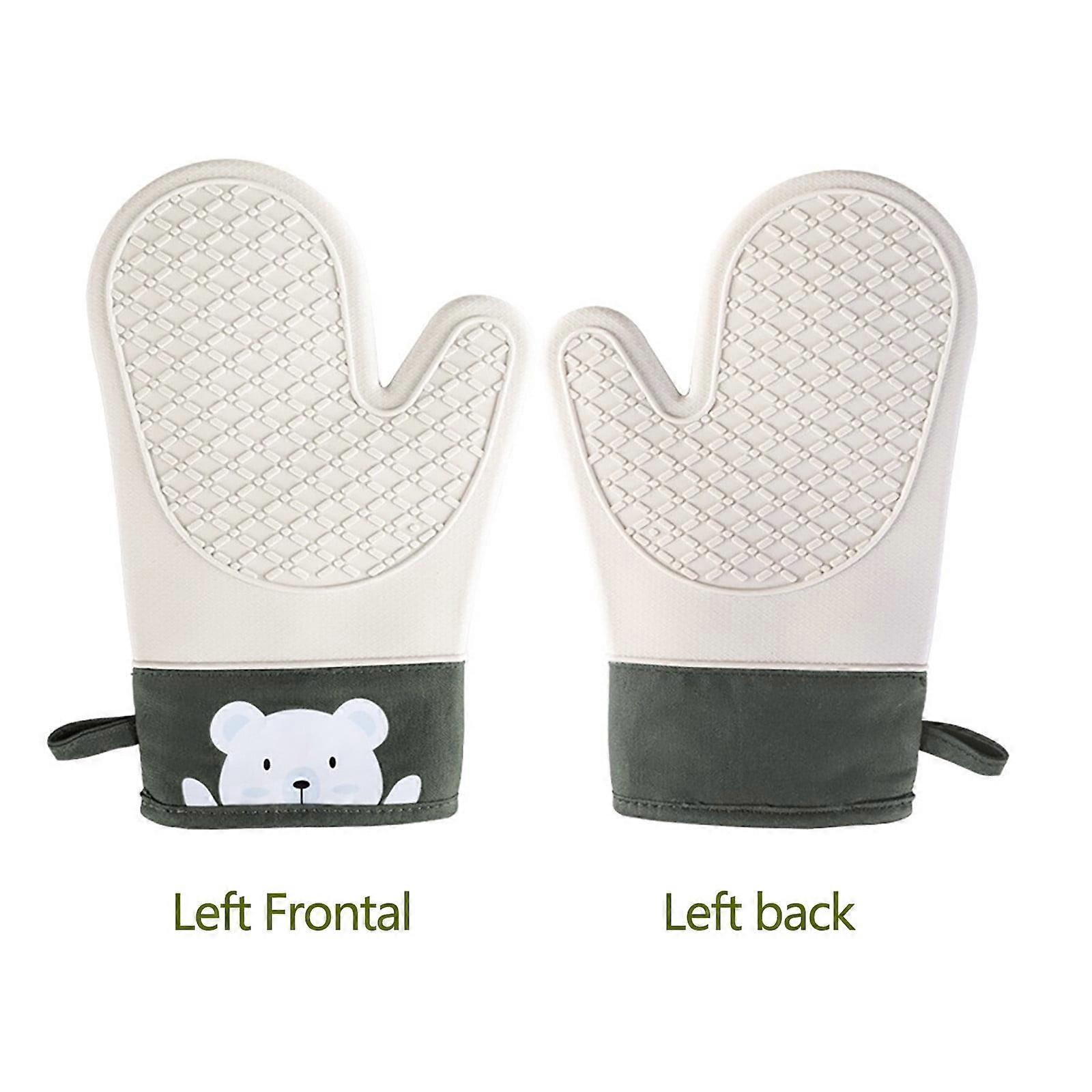 Lmueinov Thermal Protection Non-slip Silicone Oven Mitt Set, Soft Cotton Lining, Extra Long Elasticated, compatible with kitchen use, Green