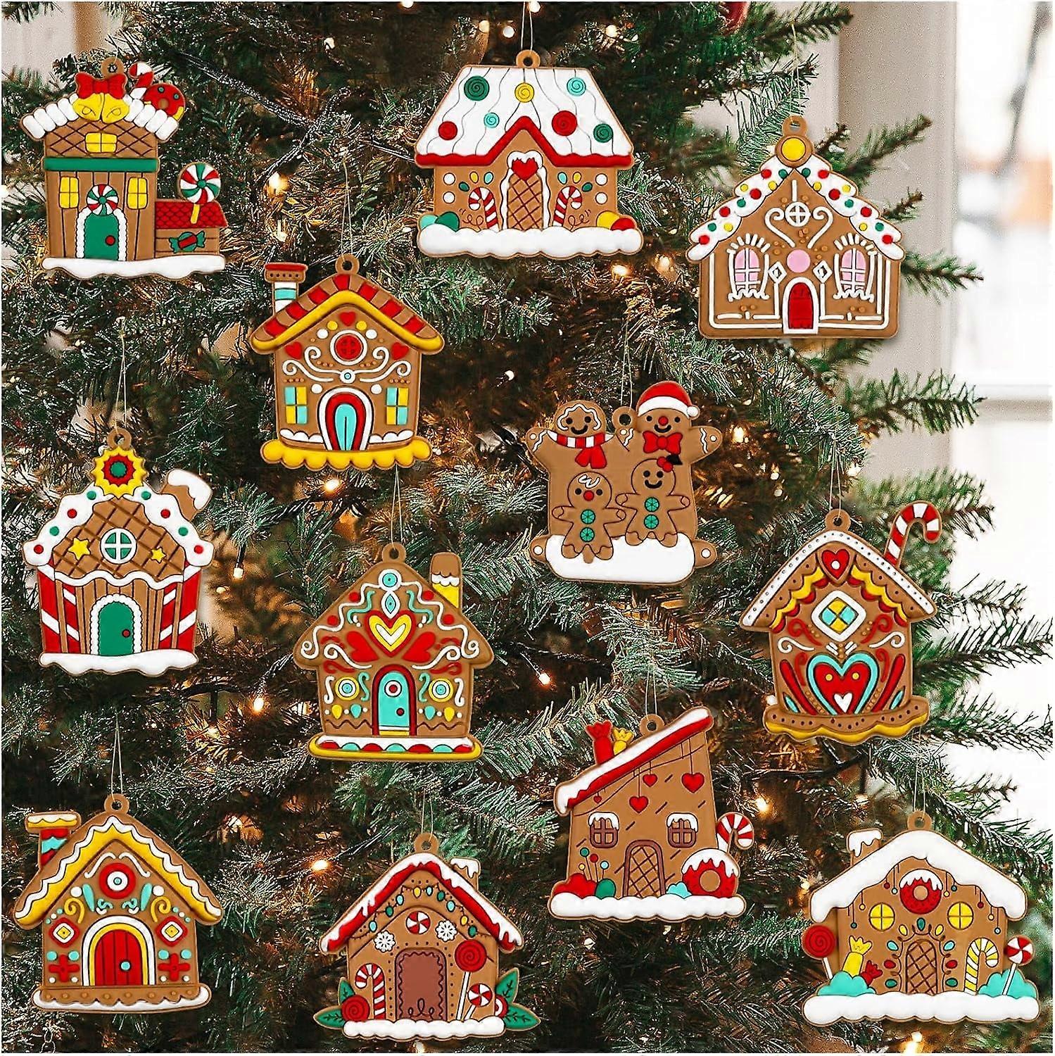 Ayieyill 12pcs Gingerbread Christmas Ornaments Gingerbread Christmas Tree Decorations Holiday Decor (House)