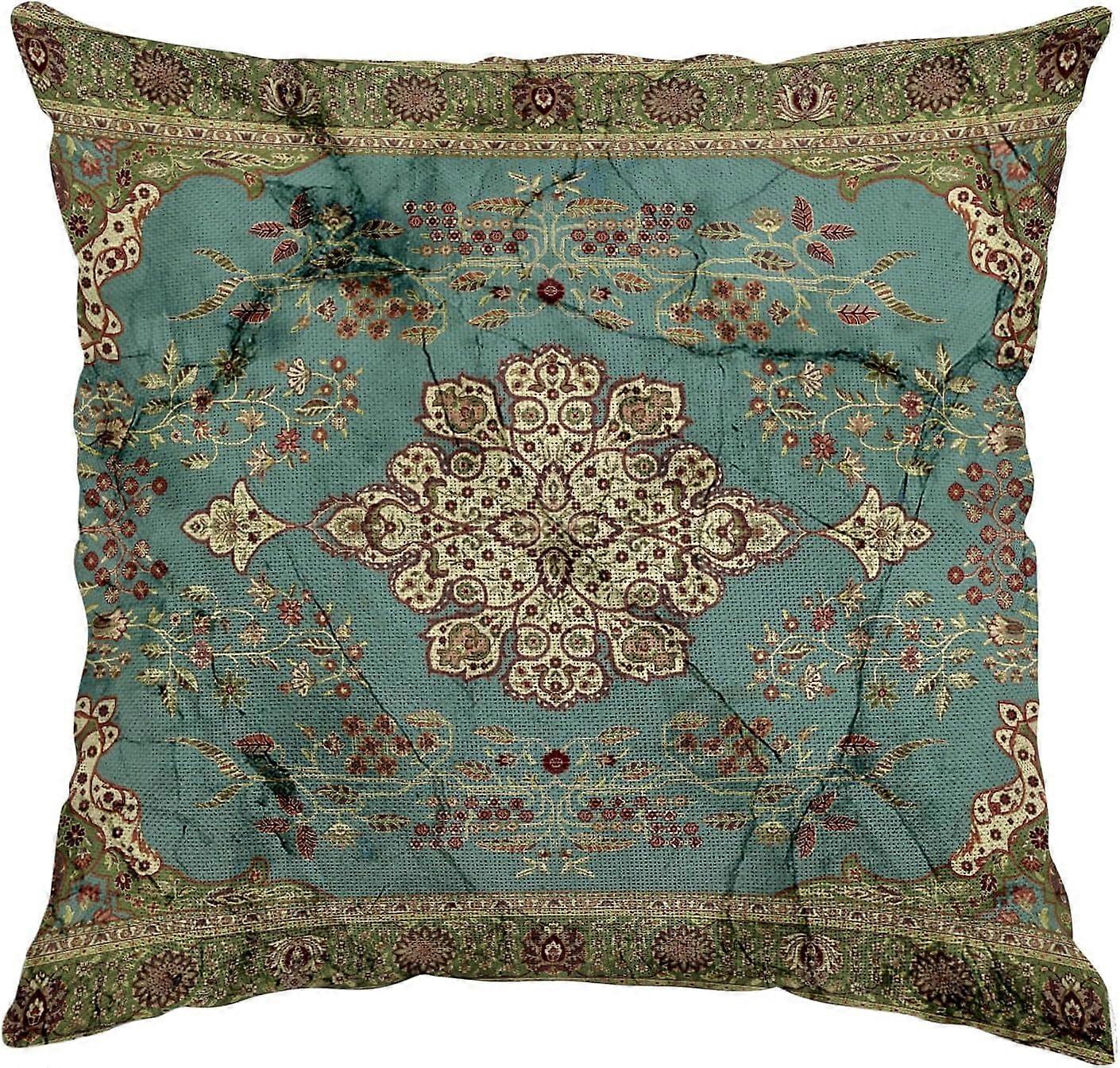 Boho Pillow Covers 18x18 Inch, Persian Carpet Green Vintage Throw Pillow Case, Antique Ethnic Decorative Retro Green Linen Pillowcase for Home Decor