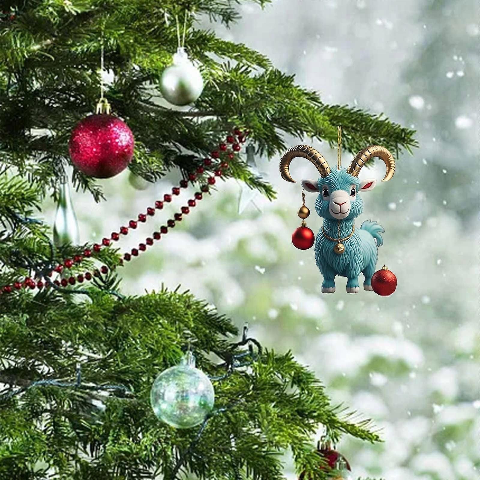 SDJMa Christmas Goat Ornament, Cute Cartoon Santa Hat Goat Hanging Decor for Xmas Tree, Car, Home, Holiday Party, Gift for Goat Lovers