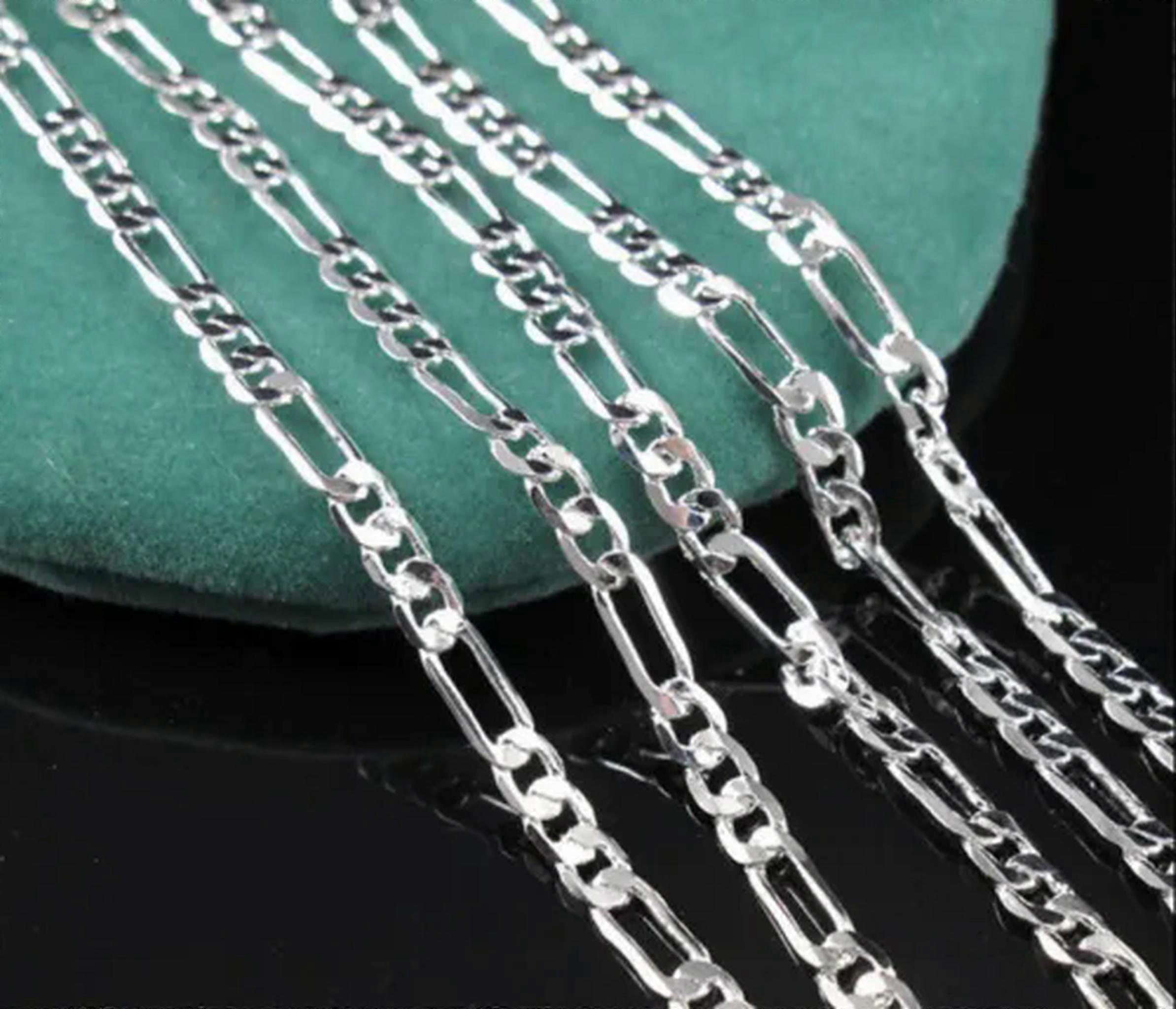 RSAMD 1pcs Mens Lots 925 Silver 2.5mm Italian Figaro Link Chain Necklace 16-30 Inches-18