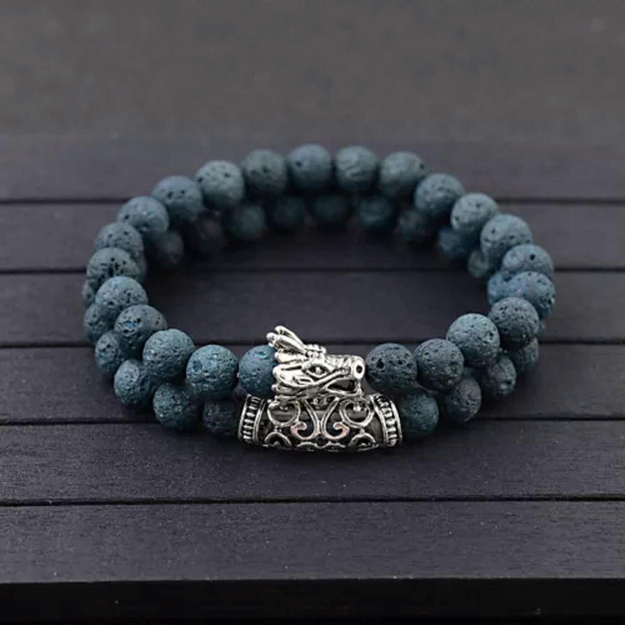 RSAMD 8mm Dragon Head Lava Howlite Chakra Stone Bead Prayer Mala Diffuser Bracelets-Dragon Set-Dark Lava
