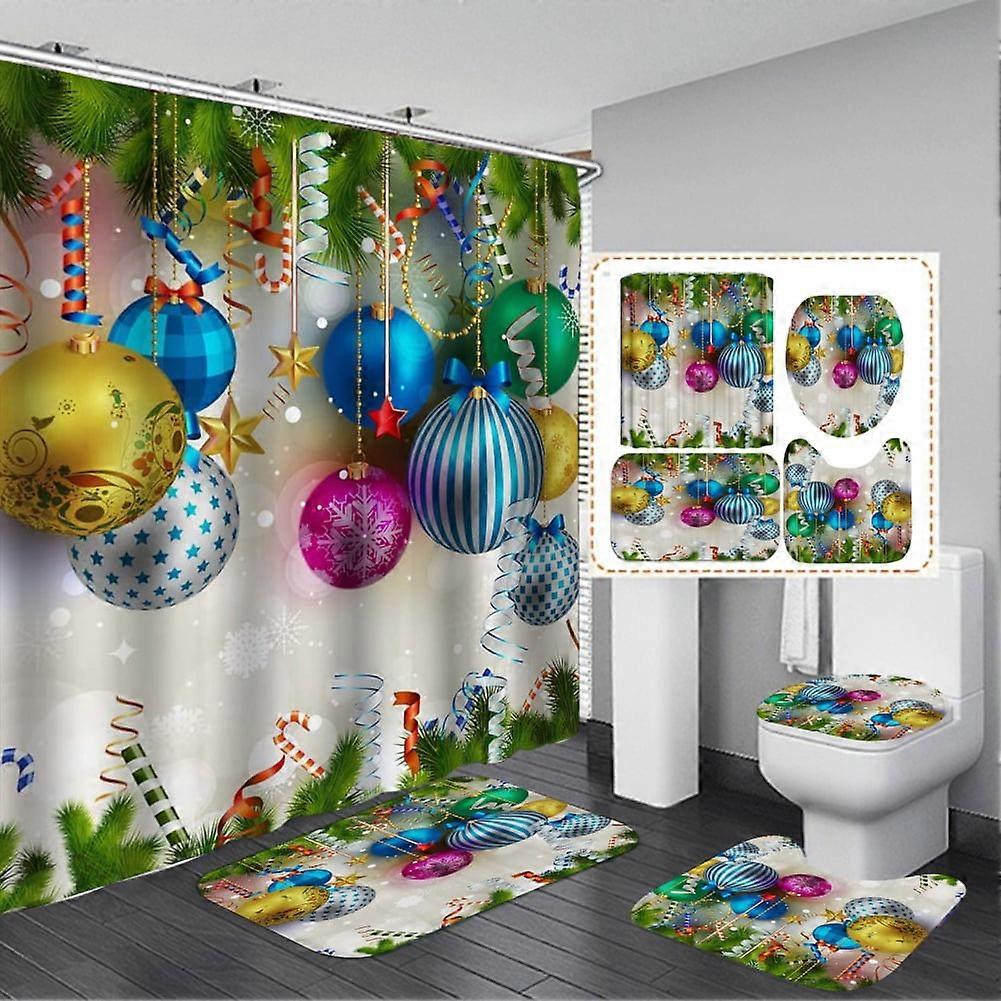 Christmas Bathroom Set with Non-Slip Rug, Shower Curtain & Toilet Cover – Compatible with Merry Christmas Theme Decor