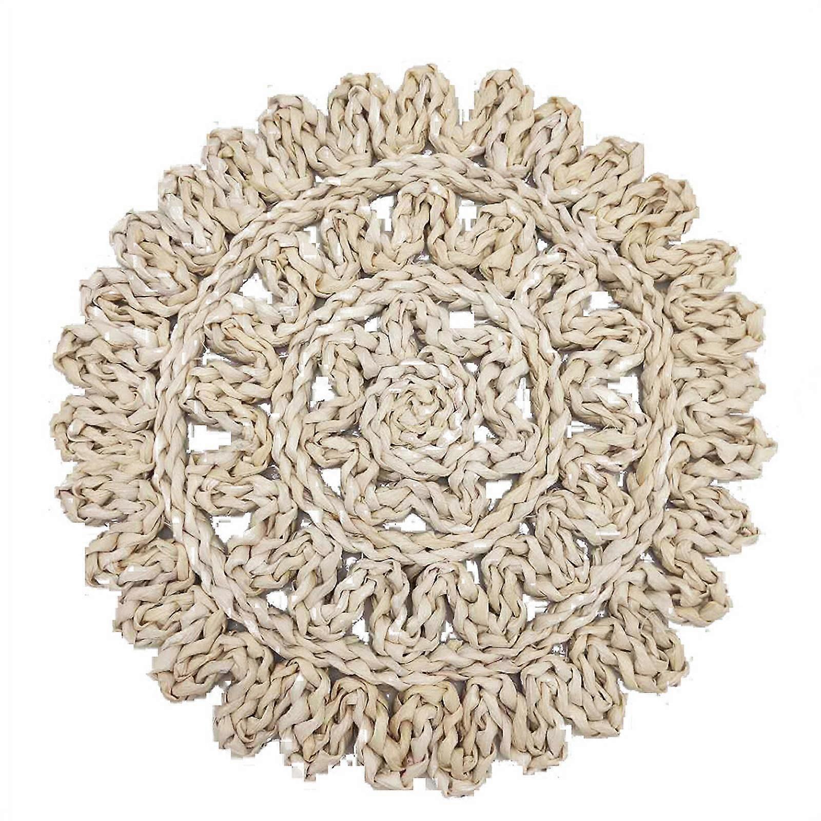 Natural Straw Round Woven Placemat Table Mats Placemat Heat Insulation Non-Slip Placemat Corn Husk Flower Woven Round Placemat, 38CM,A1