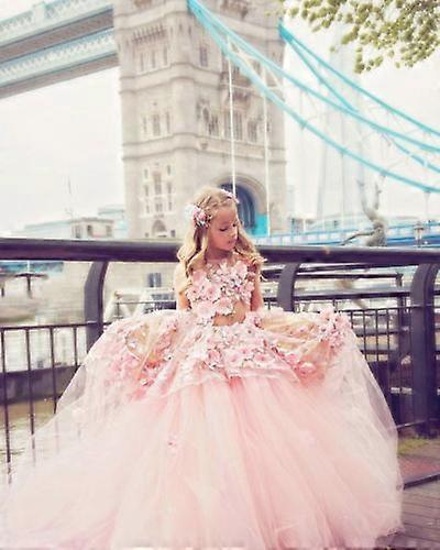 Pink Flower Girl Dress Luxury Applique Princess Pageant Birthday Party Ball Gown