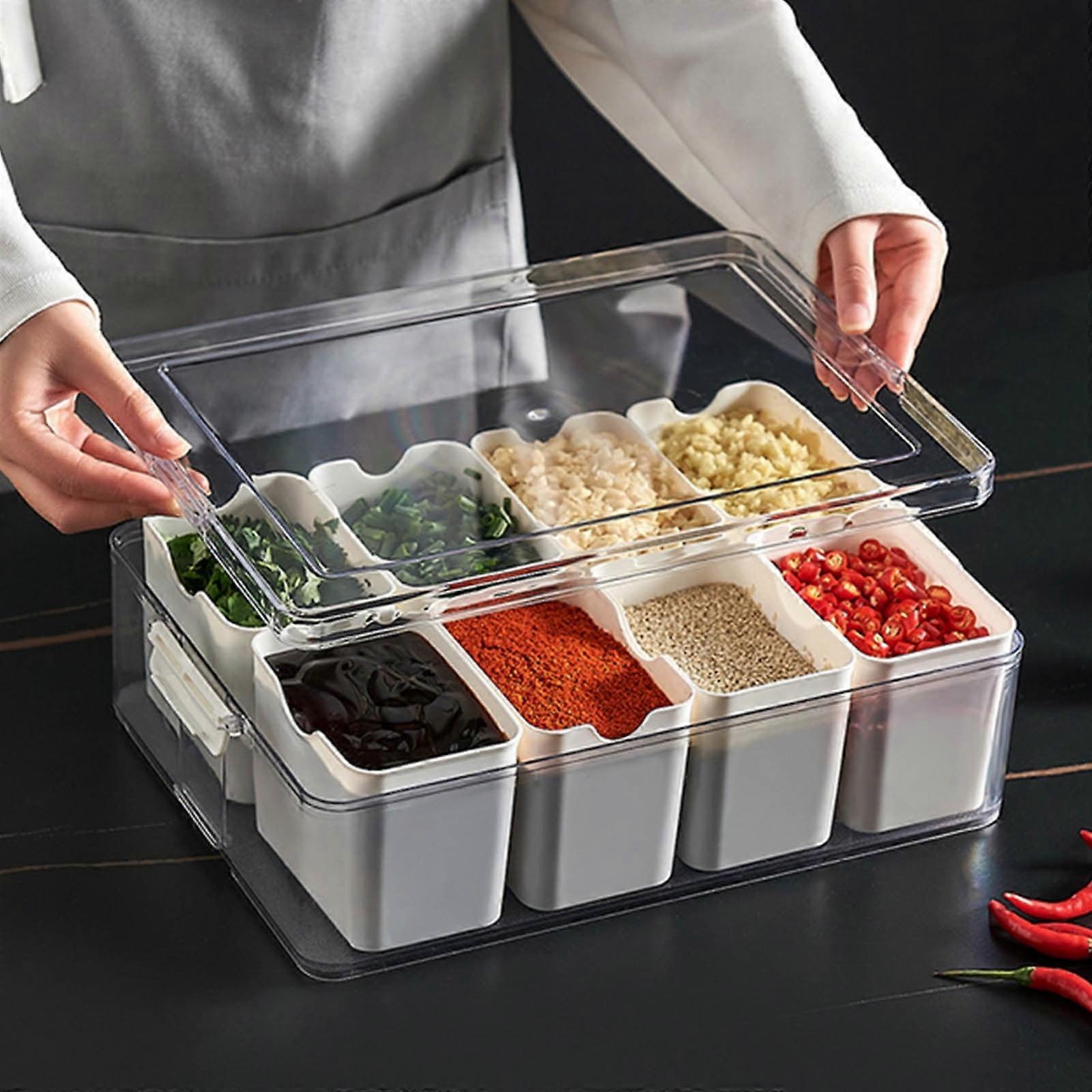 Cailmei Household Seasoning Storage Box- Food Grade Material Box- Multifunctional Eight Compartment Miscellaneous Grain Sealing Box White Free Size