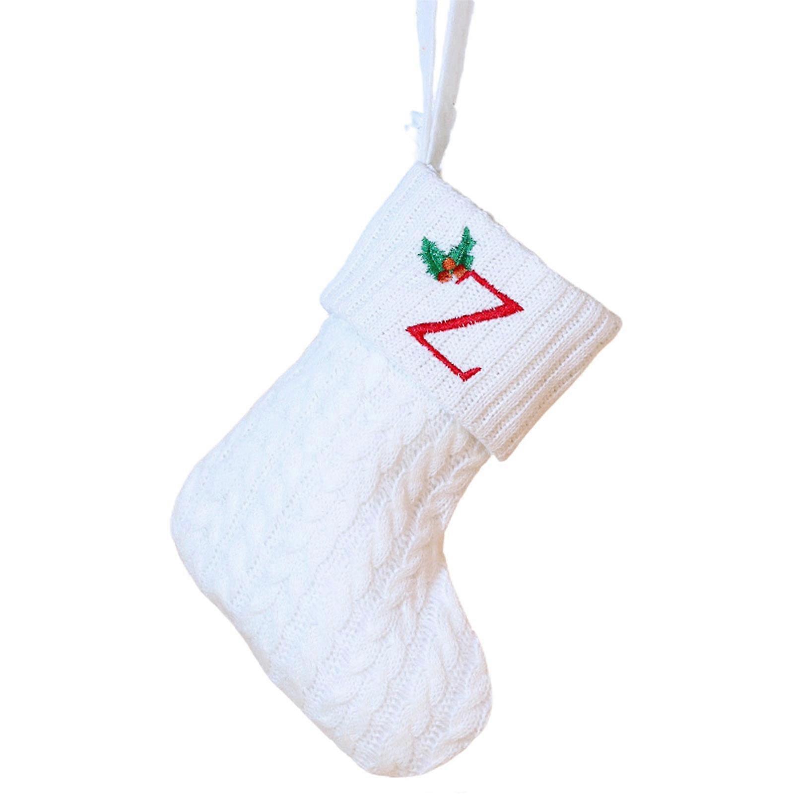Christmas Stockings with Initial, Embroidered Letter Z Knit Red White Xmas Stocking for Family Tree Fireplace Decor (8")