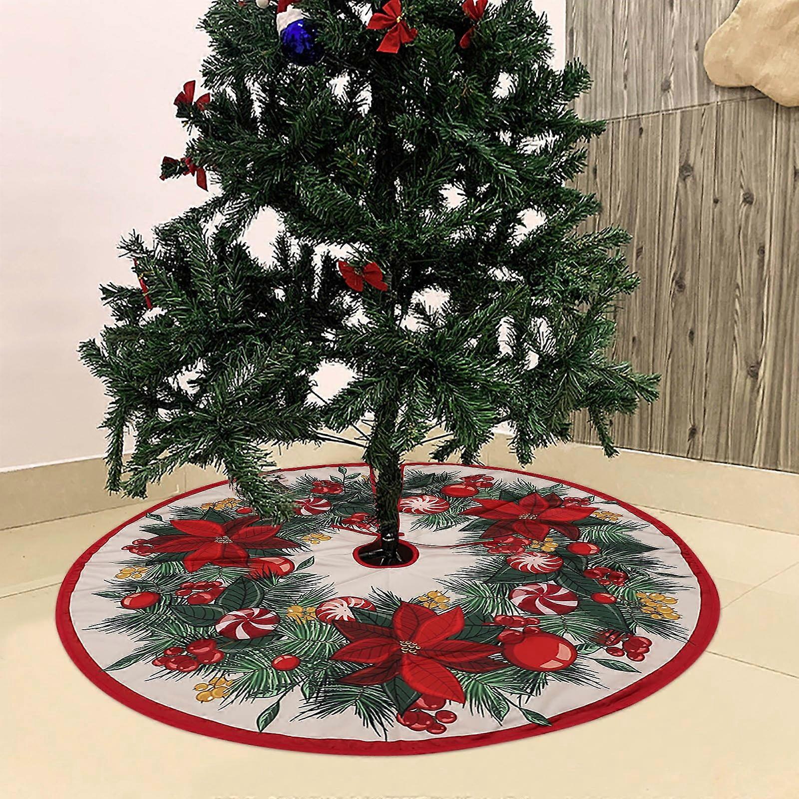 SDJMa Christmas Tree Skirt 35 Inches, Candy Berry Holly Design, Vintage Rustic Farmhouse Xmas Mat Decor for Indoor Outdoor Holiday Party