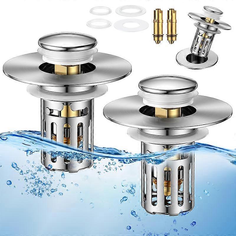 JOMST Bath Universal 2-in-1 Bathroom Sink Stopper, Pop-up with Anti-Clog Removable Stainless Steel Filter Basket Drain Hair Stopper, Anti-Od