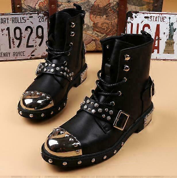 Men Fashion Leather Punk Studs Buckle Lace Up Combat Motorcycle Boots Shoes BEW