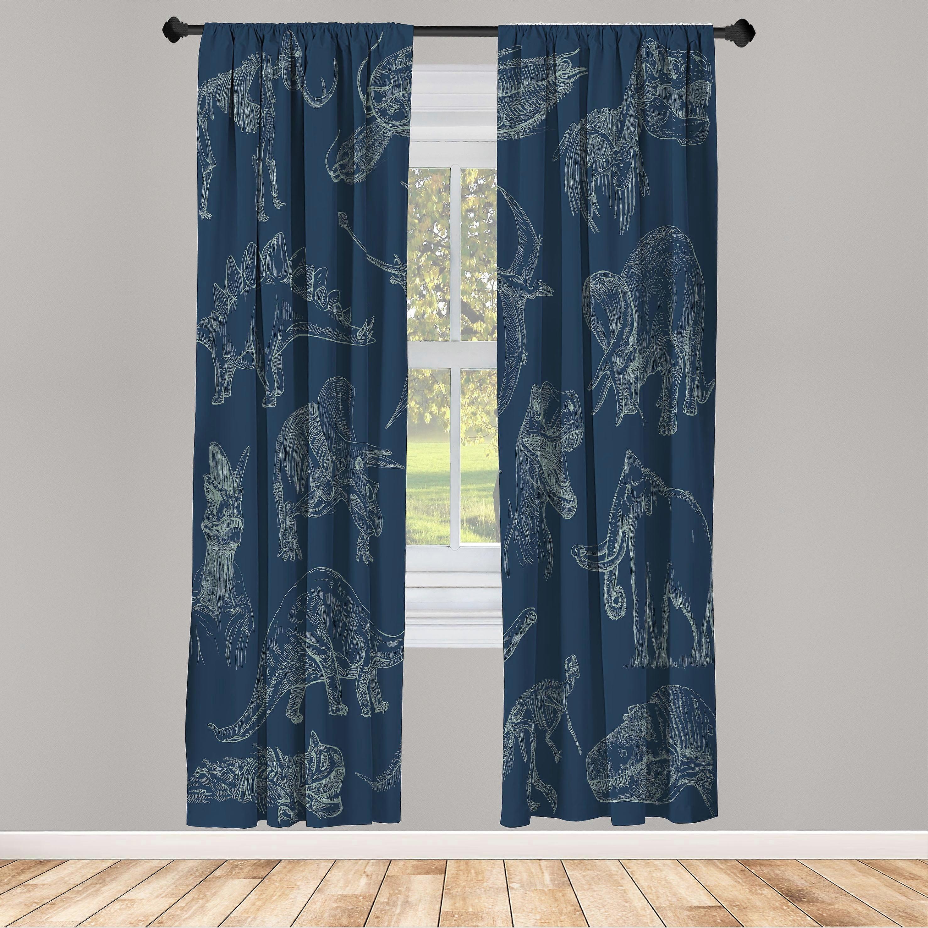 Ambesonne Jurassic Curtains, Dinosaurs Skeleton Biology, Pair of 28"x63", Night Blue