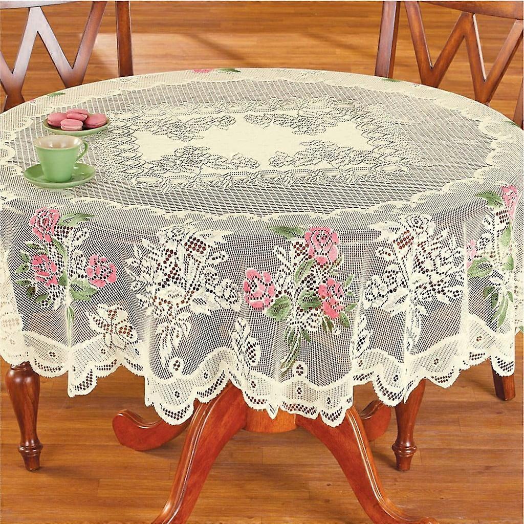 Quinlirra Clearance Lace Tablecloth, Vintage Embroidered Boho Wedding Table Cloth for Kitchen Dining Room, Reception, Outdoor Party (Round)