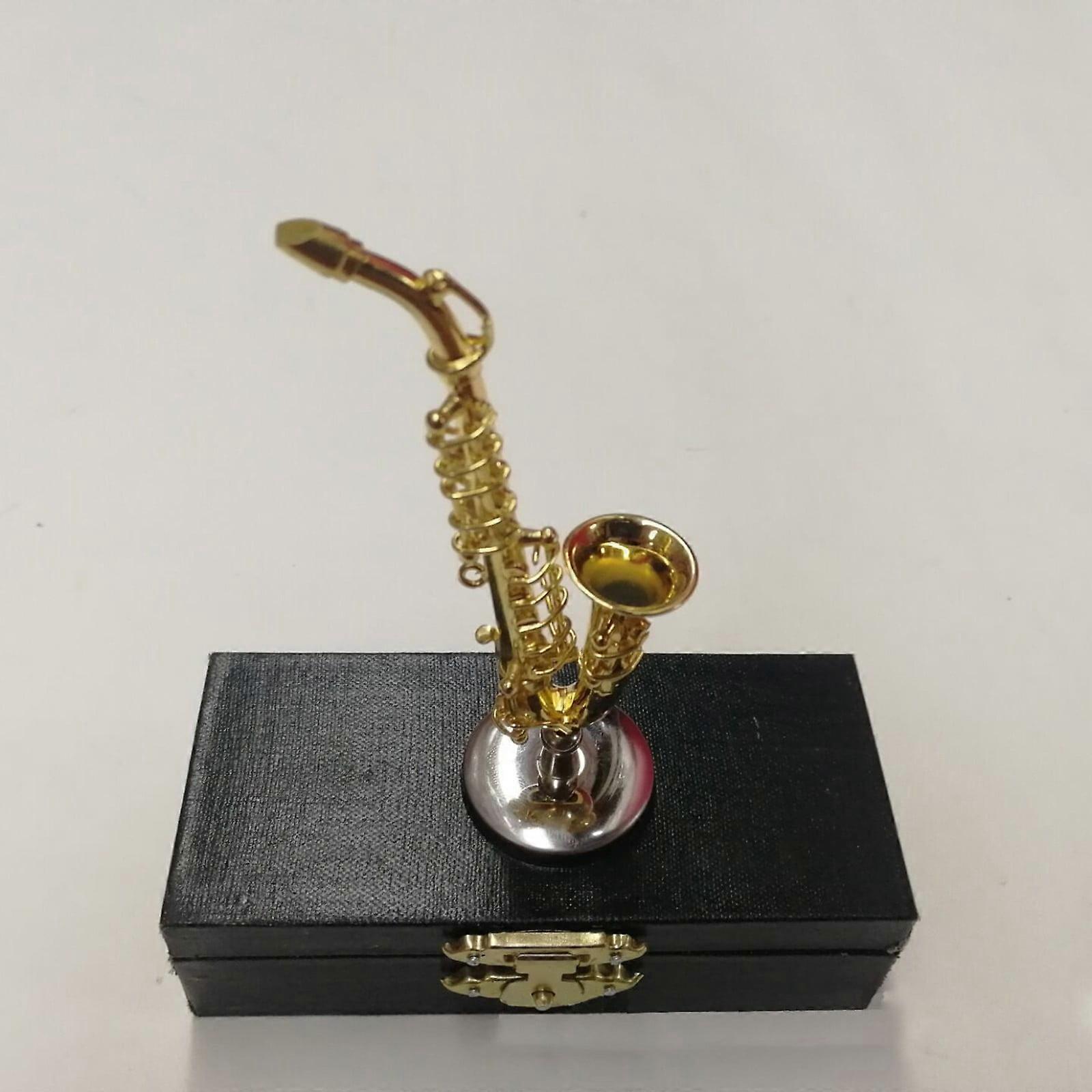 Yakbaofuo Mini Copper Ornament with Stand & Case, Compatible with Mini Musical Instrument Dollhouse Model, Desktop Decor for Christmas Halloween