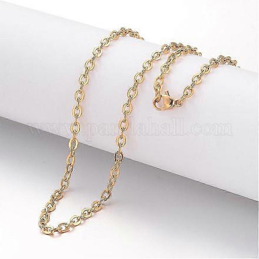 Ion Plating 304 Stainless Steel Necklace Cable Chains with Lobster Clasps Golden
