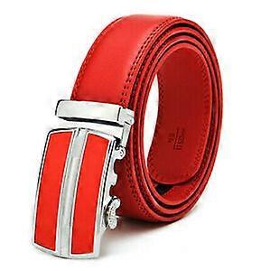 Fashion Men's Cowskin Leather Belt Automatic Buckle Belt Red Ratchet Strap Gift