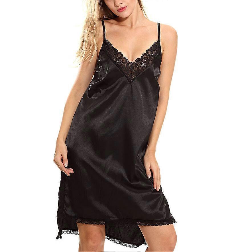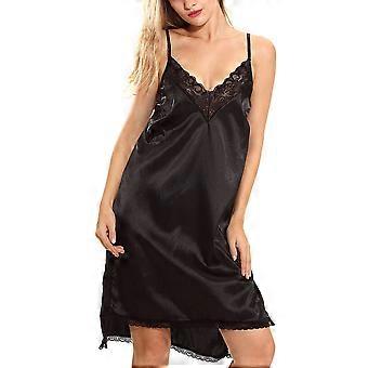 Women Satin Chemise Nightgown Sexy Full Slips Sleepwear Lace Trimed Babydoll USA