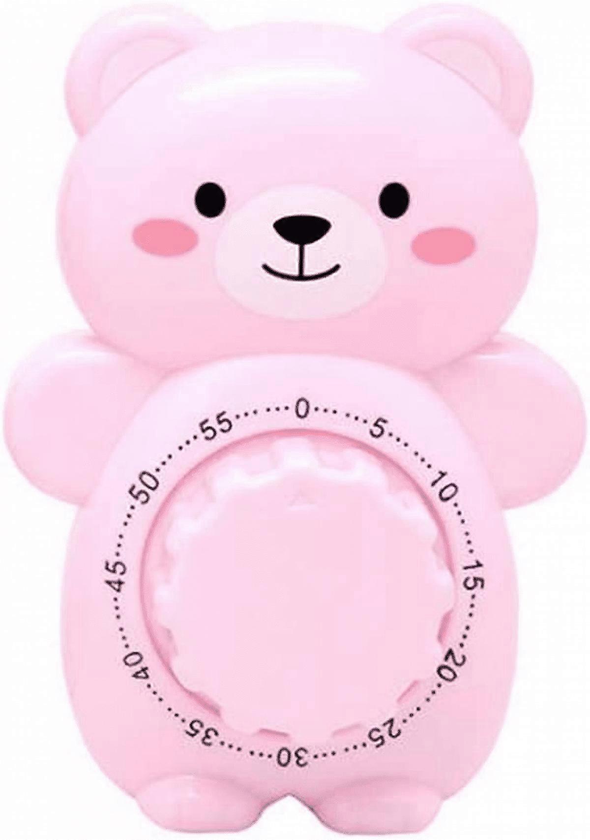 Cute Pink Cartoon Bear Kitchen Timer, 55-Minute Manual Mechanical Timer for Kids, Cooking, Study & Time Management