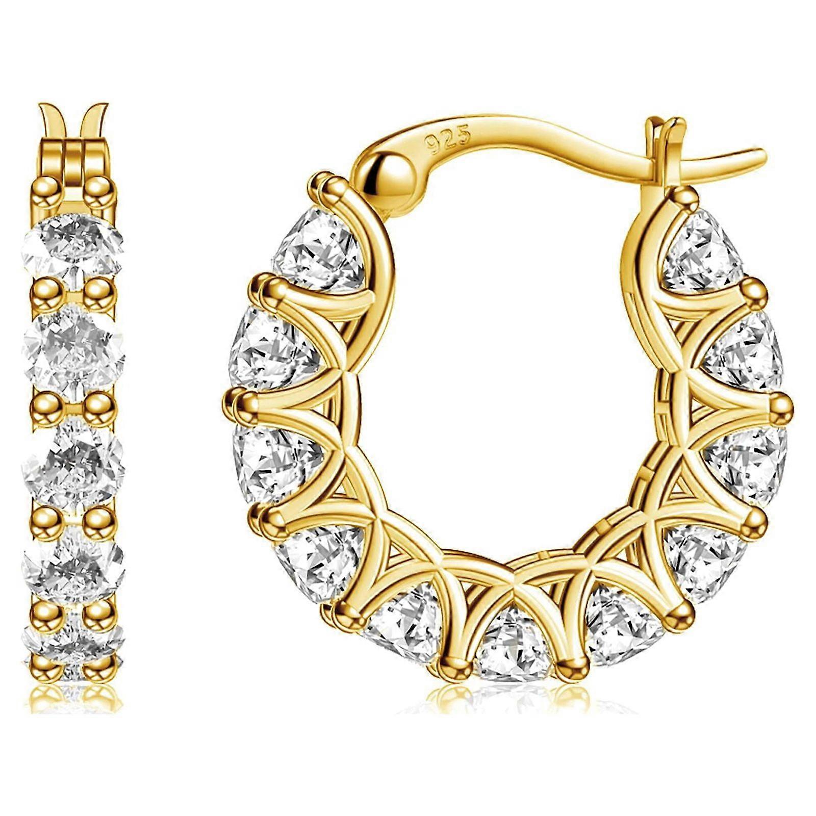 AllenCOCO 14K Gold Plated Sterling Silver Post Simulated Diamond Cubic Zirconia Hoop Earrings Elegant for Women Gifts, 16-19mm