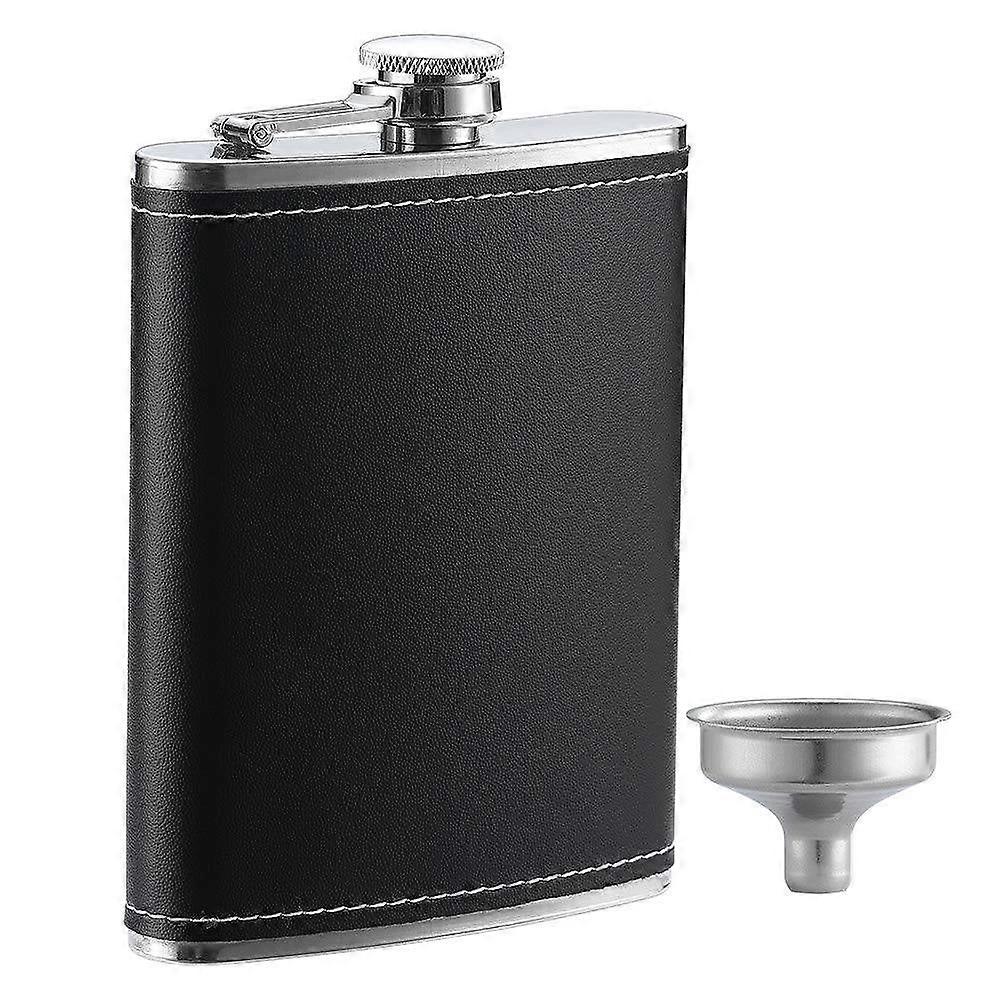 WSBArt 8 Oz Hip Flask for Liquor Black Leather Flask and Funnel, Leak Proof 18/8 Stainless Steel Pocket Flask for Men Gift