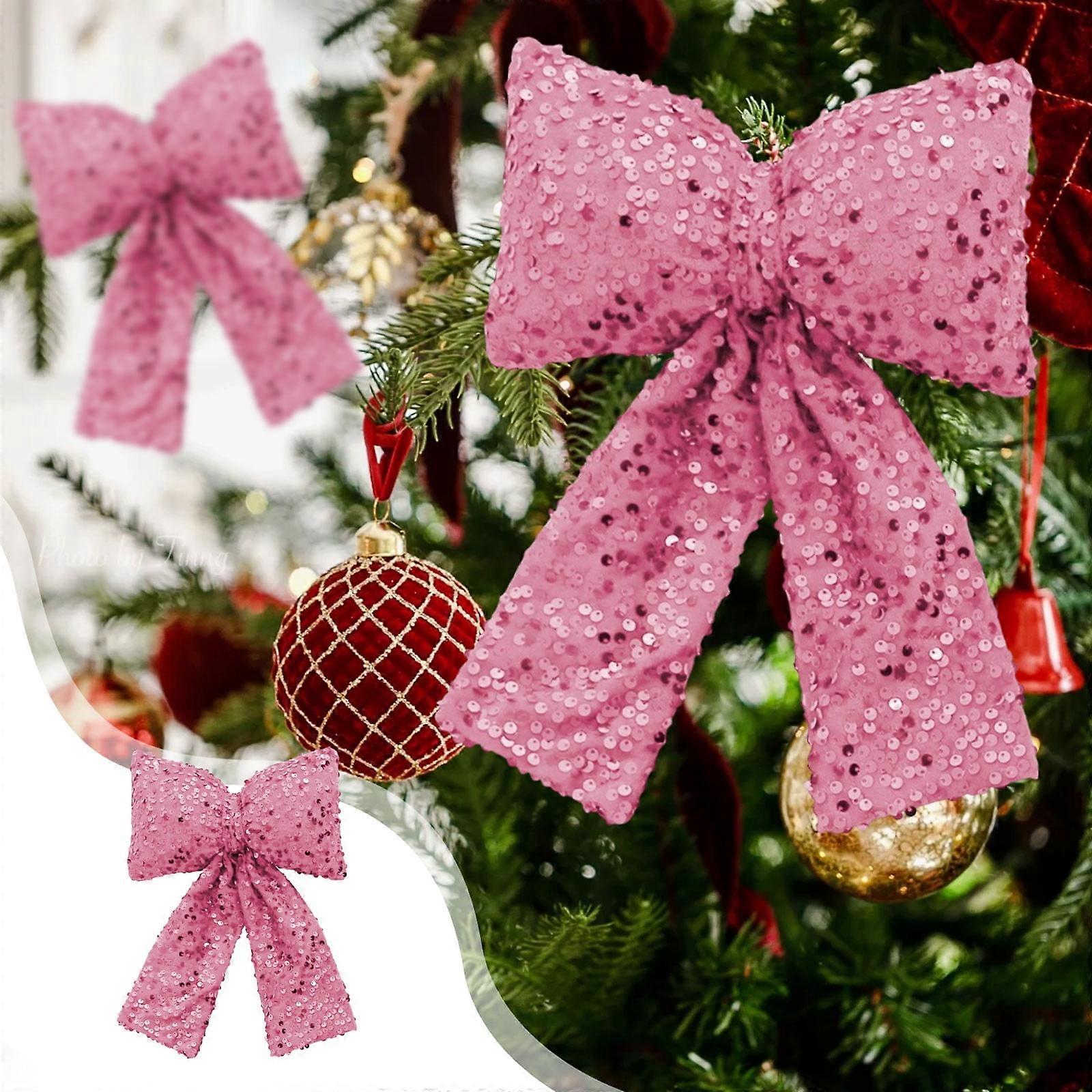 Glitter Christmas Bow Ornaments, Shiny Wreath Bows Pendant Hanging Decorations for Holiday Winter Home Party compatible with Christmas Tree