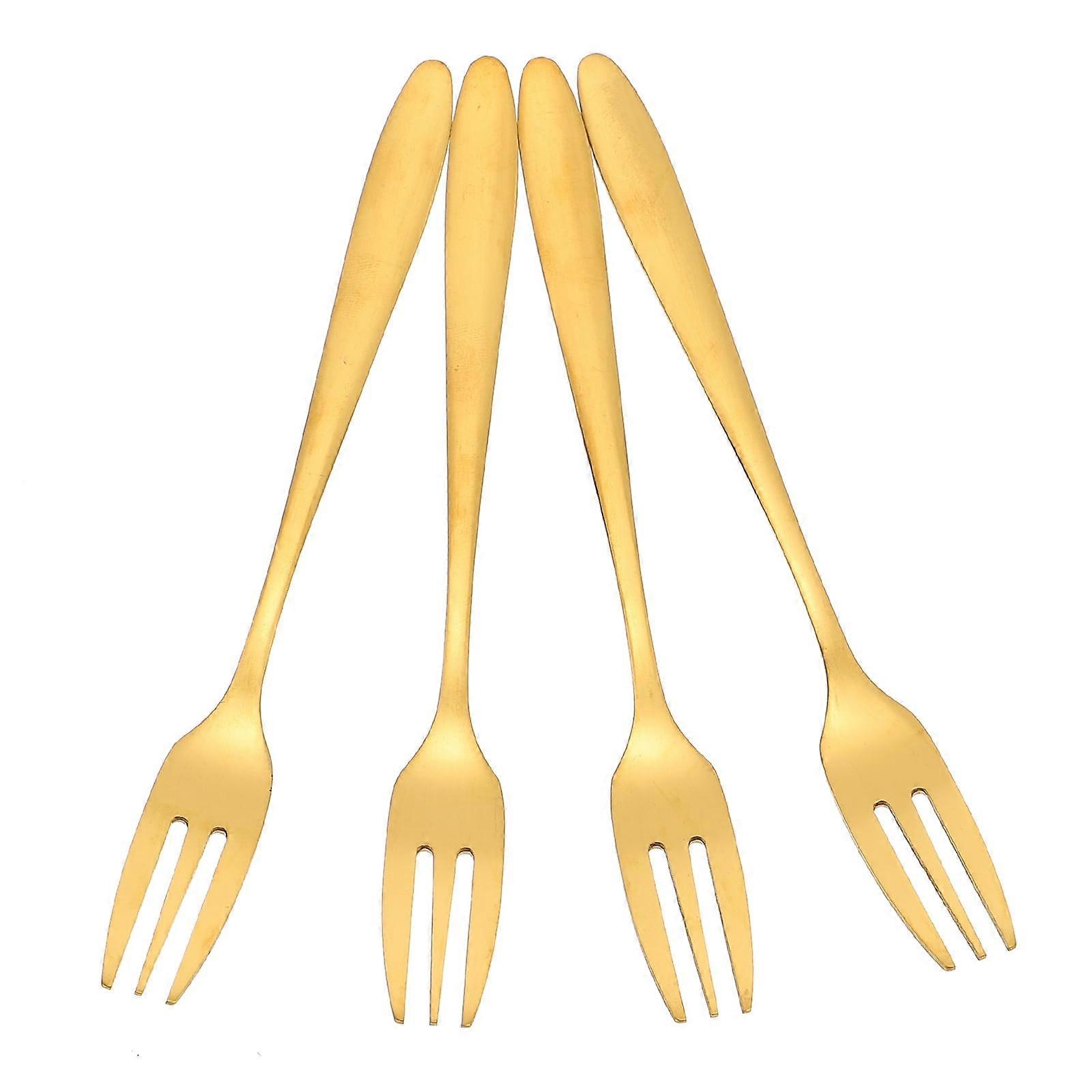 4 Pcs Kitchen Gadget Kids Fork Gold Silverware Food Pick Forks Three Prong Toothpicks Cake Stainless Steel Child