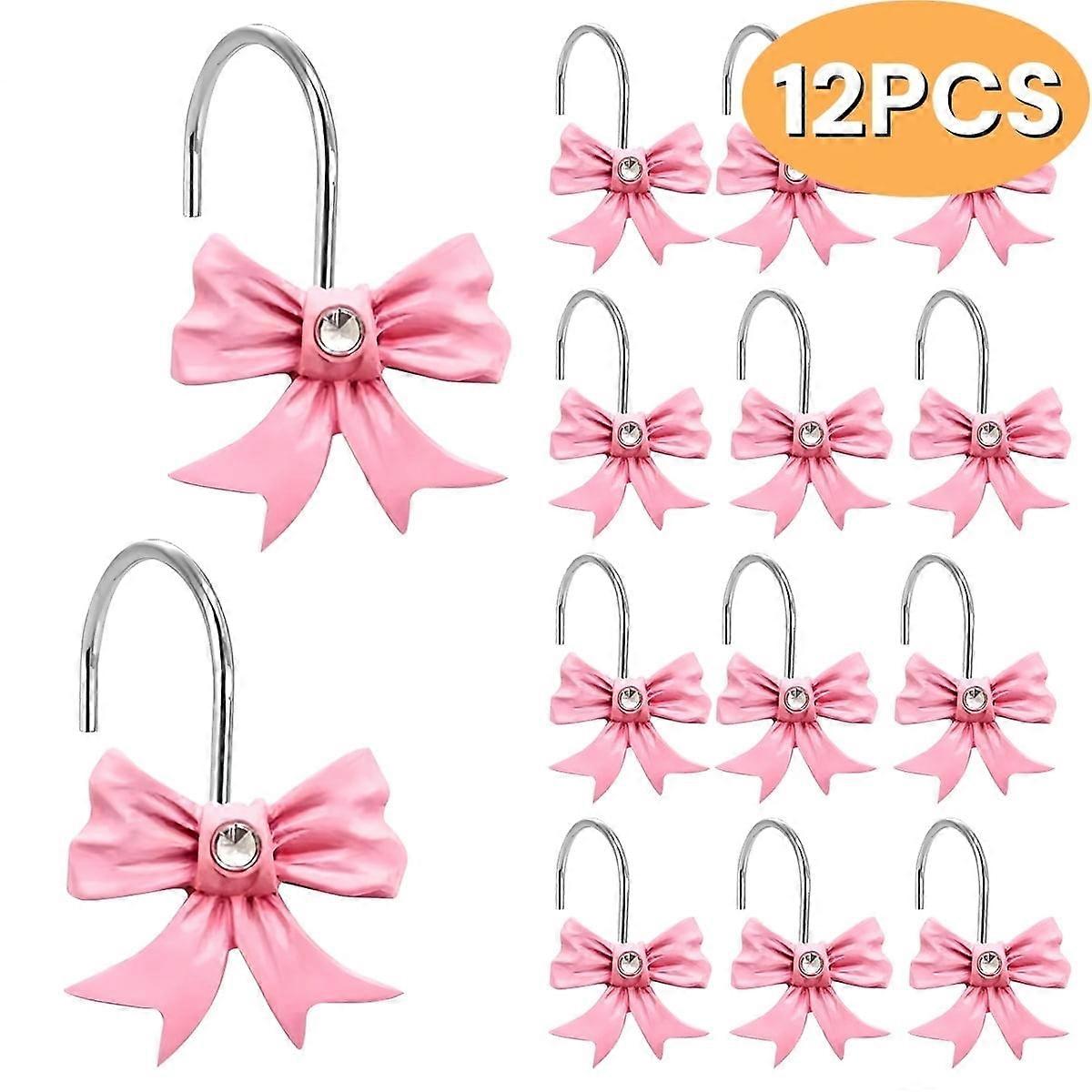 Shower Hooks Pink Bow Knot Decorative Shower Curtain Rings Hooks for Bathroom Room Nursery Art Decors 12Pcs