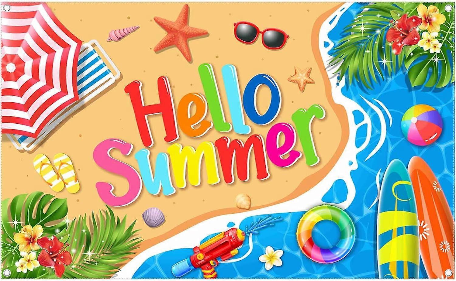 72x43inch Fabric Hello Summer Beach Backdrop Hawaiian Pool Photography Background Tropical Surfboard Banner Birthday Party Decorations Photo Props