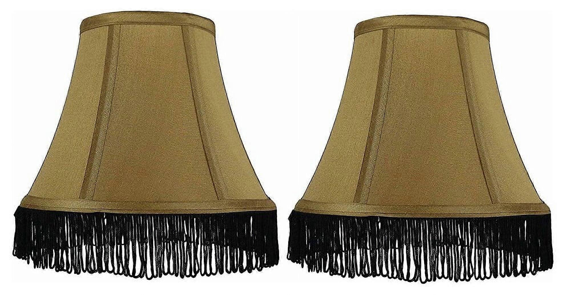 Urbanest Silk Bell Lamp Shade, 5x9x7", Gold With Black Fringe, Set of 2