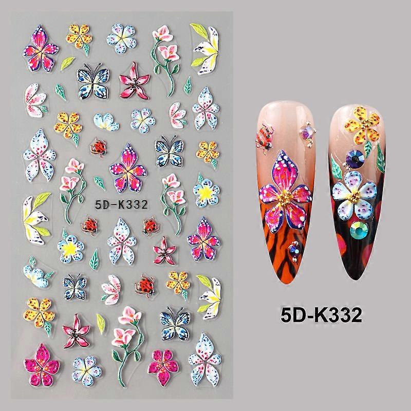 5D Embossed Flower Butterfly Nail Stickers Colorful Floral Petals Design Nail Art Decals Acrylic Self-Adhesive Slider Decor