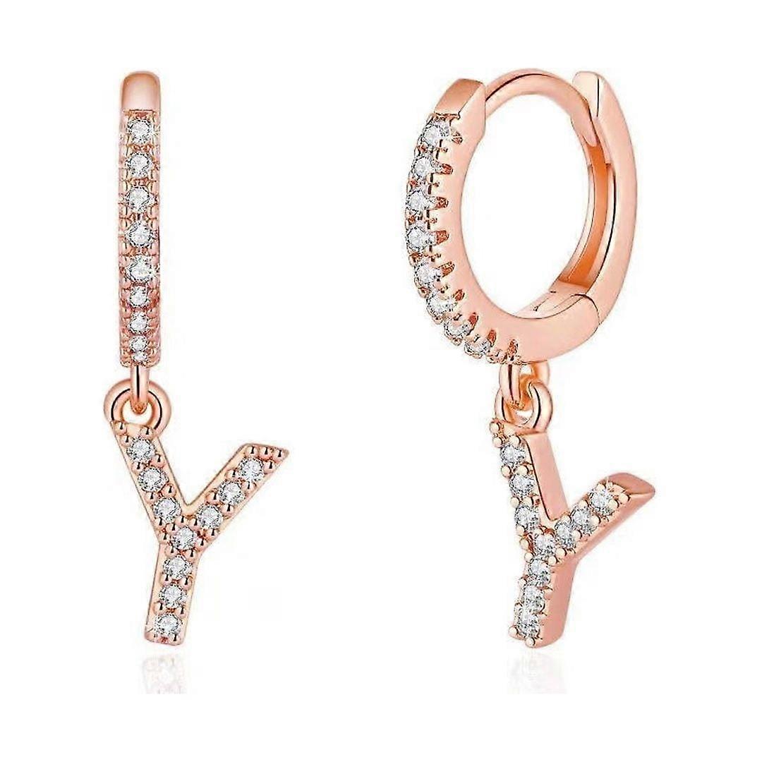 TURANDOSS Initial Earrings for Women 925 Sterling Silver Gold Plated Cubic Zirconia Hypoallergenic Huggie Hoops