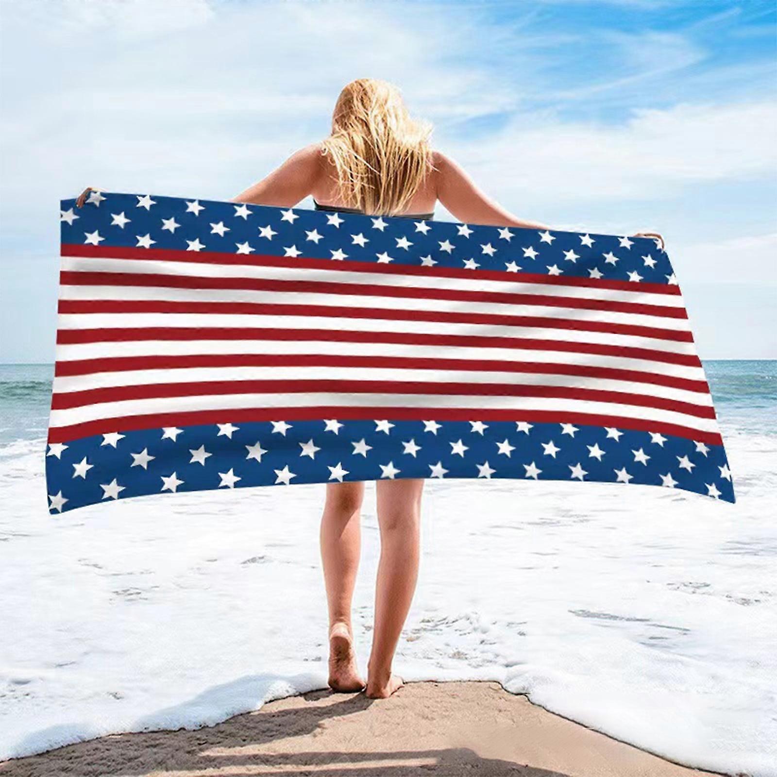 4th of July Patriotic Beach Towel - Microfiber Flag Print, Water Absorbing, Sandproof, Lightweight, 27.5" x 59", Portable Vacation Essential