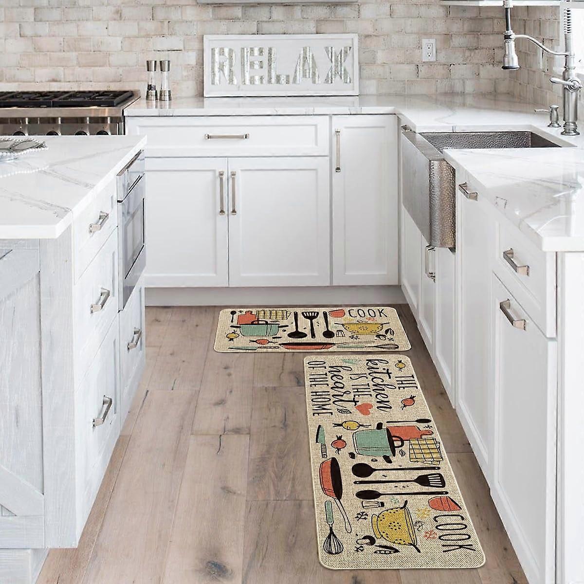 Sm:)e Kitchen is the Heart of the Home Farmhouse Kitchen Rug Set of 2 Non Slip Antifatigue Washable 17 x 29 Inch and 17 x 47 Inch, Light Brown