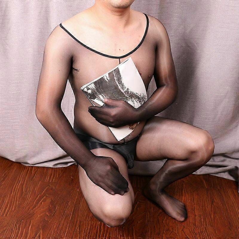 Men Ultra-thin 1D Shiny Glossy Bodysuit See Through Sheer Body Stockings Tights